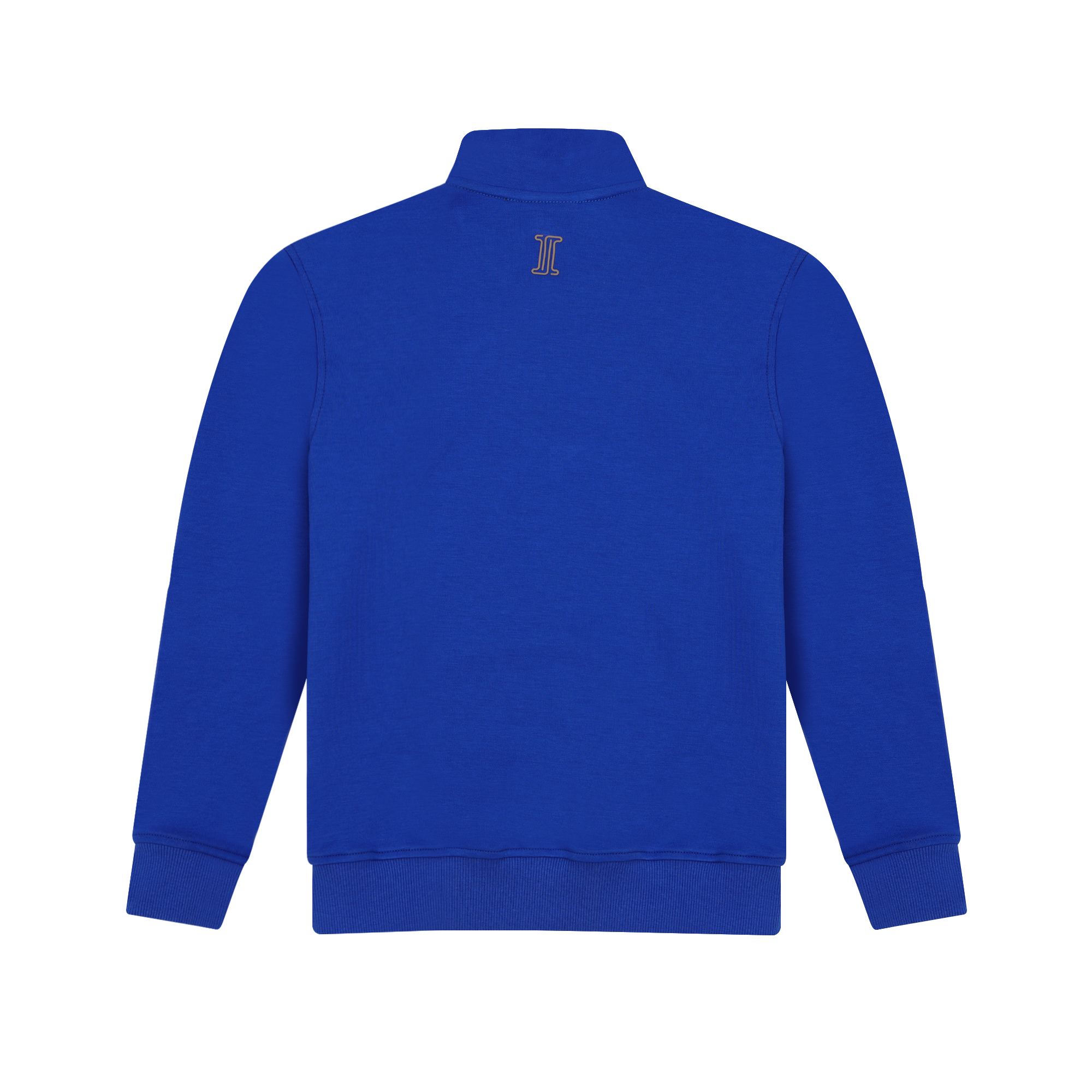 Subtiel geborduurd monogram op de achterzijde van de kraag