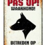 – Met de tekst 'Pas op! Waakhond! Betreden op eigen risico!'