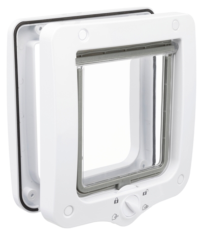 Het Trixie 4-Weg Kattenluik Grijs van 22X10 cm is een huisdierluik met vier afsluitmogelijkheden (dicht, open, alleen in, alleen uit) met transparante klep. De perfecte oplossing voor iedereen die zijn kat meer vrijheid wil geven, zonder telkens aanwezig te moeten zijn om het dier naar binnen en naar buiten te laten. Dit kattenluik monteer je eenvoudig in de deur van jouw keuze. Het kunststof luik is rondom afgedicht met TPR- en heeft een geluidsarme klep voor zo min mogelijk tocht en overlast. Met de draaisluiting kun je het luik op vier standen zetten, namelijk: geheel gesloten, in en uit, alleen in of alleen uit. Zo zorg je bijvoorbeeld ook dat jouw kat terug naar binnen kan en vervolgens niet meer terug naar buiten. Waterproof en met drie jaar garantie!
