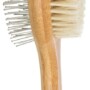 De Trixie Borstel Dubbelzijdig Bamboe 19 x 5 cm is een borstel voor honden met lang, kort en koordhaar, gemaakt van bamboe met metalen pennen met noppen. Dee natuurlijke borstels van Trixie hebben een basis van bamboe, met pennen en noppen van metaal. De borstel is dubbelzijdig en aan de andere kant voorzien van zachtere haren, voor het borstelen van de bovenste laag van de vacht. Deze borstel is geschikt voor korthaar, langhaar en koordhaar.
