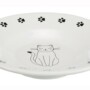 Drinkschotel voor de kat, gemaakt van keramiek. De bak is voorzien van een afbeelding van een kat met daaromheen kattenpootjes.