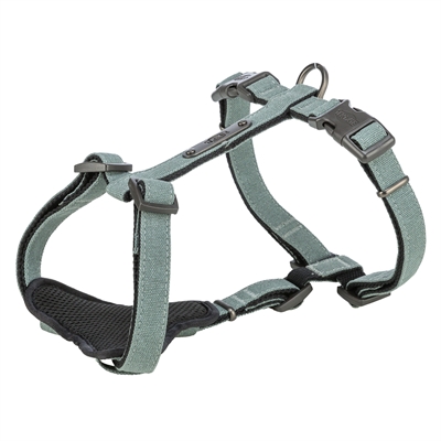 Het Trixie Hondentuig Citystyle H-Tuig Katoen Salie 75-120X2,5 cm combineert stijl, comfort en veiligheid voor jouw harige vriend tijdens elke wandeling! Dit tuig is gemaakt van canvas (100% katoen) en singelband. Hierdoor weegt het tuig weinig. Het borstgedeelte is gevoerd, wat het comfort verhoogt. Het borststuk, de nek- en buikriem zijn traploos verstelbaar. Aan het oogje kun je een penning of flasher bevestigen.