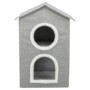 De Trixie Kattenmand/Kattenhuis Nora Soft Twee Verdiepingen Lichtgrijs is een gezellig en praktisch kattenhuis waarin jouw kat zich heerlijk kan terugtrekken. Het huis heeft twee verdiepingen met een bekleed ligplateau, zodat je kat kan kiezen tussen een knus plekje onderin of een hoger rustpunt. Het geheel is gemaakt van een stevige constructie met MDF-platen en een geweven polyester bekleding, en dankzij het opvouwbare ontwerp is het huis eenvoudig op te bergen. De slipvaste onderkant zorgt ervoor dat het stevig blijft staan, ook bij enthousiast instappen.