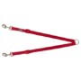 De Trixie Koppellijn Premium Rood 40-70X1 cm is een dubbele lijn om twee honden aan één riem te kunnen koppelen. De lijn heeft een handig oogje waar je de riem aan vastklikt en loopt uiteen in twee gespen, die je aan twee verschillende halsbanden kunt klikken. Zo kun je met twee honden tegelijk lopen zonder dat je meerdere riemen hoeft vast te houden. De lijn is gemaakt van traploos verstelbaar singelband. De koppellijn is bovendien voorzien van extra oogjes zodat je er een penning of flasher aan vast kunt maken.