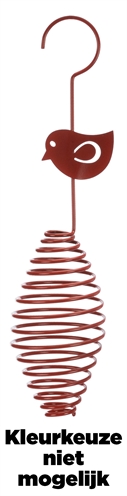 De Trixie Mezenbolhouder Spiraal Vogel 7 x 7 x 35 cm is een leuke houder voor mezenbollen en vetbolletjes voor tuinvogels, gemaakt van metaal. Een leuke en handige manier om vogels in jouw tuin mezenbollen en ander aanvullend voer aan te bieden. Deze houder is gemaakt van metaal voor een goede bestendigheid tegen het weer en is voorzien van een metalen vogeltje. Door de stevige, metalen haak aan de bovenkant is de houder eenvoudig op te hangen en vind je er altijd wel een plekje voor op jouw balkon of in jouw tuin.