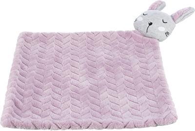 De Trixie Puppy Deken Haas Lila/Lichtgrijs 55X40 cm is een deken voor puppy's met een leuk patroon en zacht pluche stof, met speeltje in de vorm van een haas. Met dit dekentje kan jouw pup een heerlijke powernap doen! De combinatie van pluche en sweatstof maakt het dekentje lekker zacht. Aan een hoek zit een speeltje in de vorm van een haas bevestigd. Deze haas is gevuld met polyestervlies, waardoor het stevig aanvoelt tijdens het spelen. De deken is goed schoon te houden en kan op 40 graden Celsius gewassen worden.