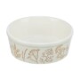 TRIXIE VOERBAK / DRINKBAK HOND PLANTMOTIEF STRUCTUUR KERAMIEK WIT / TAUPE