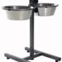 Hondenstandaard inclusief 2 RVS voer/waterbakken. De standaard heeft de vorm van een H en is uitgevoerd in een metaal met hamerslageffect in poedercoating. De standaard is in hoogte verstelbaar om er voor te zorgen dat de hond de juiste lichaamshouding heeft tijdens het drinken/eten, dit ondersteunt de spijsvertering. Doorsnede van de RVS bakken zijn 15 cm. De onderzijde is voorzien van rubberen voetjes om uw vloer te beschermen.