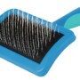 De Vivog Slickerborstel Hard Blauw S is speciaal ontworpen voor kleinere honden en katten met alle soorten vacht, om te ontklitten en te verzorgen. De slickerborstel heeft roestvrije lange en korten pennen voor diep borstelen. Op deze manier ontklit je de vacht en verwijder je losse haren. Je stimuleert de huid en zorgt voor gezond haar, mede omdat de pennen op een kussen met lucht zijn geplaatst om het borstelen te optimaliseren. Geschikt voor lange vacht, terriers en schnauzers en krullende vacht.