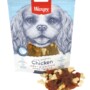 Samenstelling: kip, plantaardig eiwit, zetmeel, calciumcarbonaat, glycerine, tarwebloem, sorbitol, zout, door de EG toegestande kleurstoffen